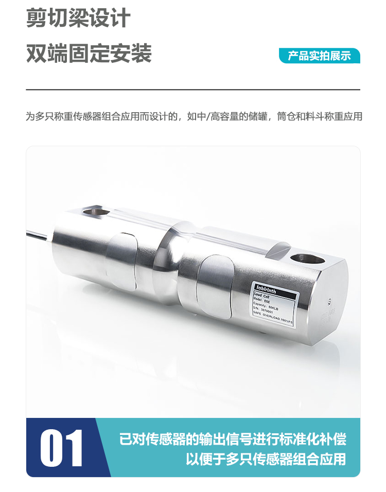 丽景DSE圆柱形双剪切梁称重传感器不锈钢材质料斗料仓料罐称重