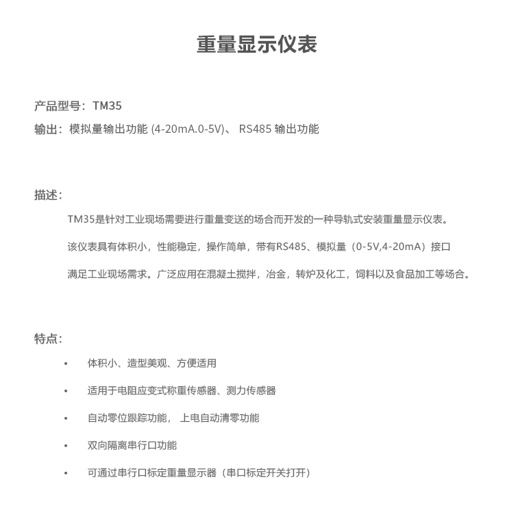 丽景TM35称重显示仪表导轨安装称重变送器RS485,0-10V,4-20mA