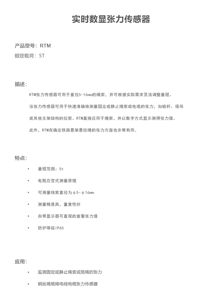 丽景RTM绳索张力传感器,5-16mm直径适用,量程可定制,数字显示,精准测量固定/静止绳索张力