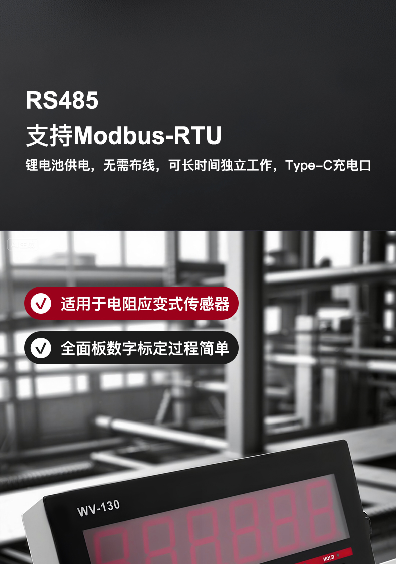 称重显示变送器丽景WV130高精度重量传感器仪表RS485通讯支持MODBUS-RTU锂电池供电免布线